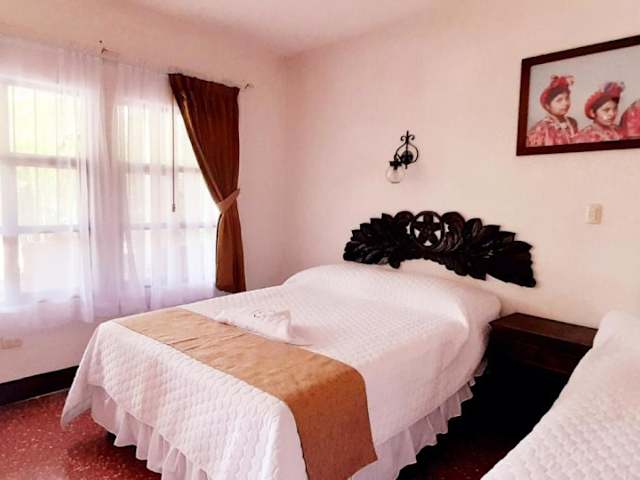 Das La Chacra de Joel Hotel in Huehuetenango ist ein charmantes Hotel im Kolonialstil, das Ihnen mit seinem Restaurant und schönen Gärten einen angenehmen Aufenthalt bietet. Die Zimmer sind traditionell eingerichtet und verfügen über einen Sitzbereich, Kabel-TV und ein eigenes Bad. Das Hotel bietet zudem eine 24-Stunden-Rezeption, einen Garten, eine Terrasse, eine Gemeinschaftslounge, eine Gepäckaufbewahrung und einen Kinderspielplatz. Die Parkplätze am Hotel sind kostenlos.