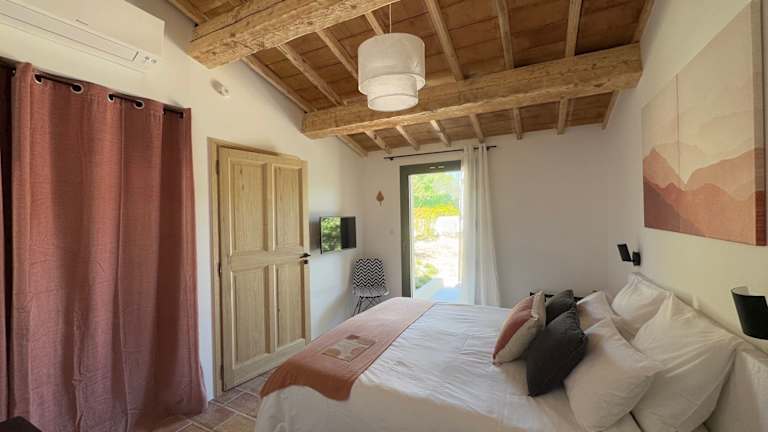 Die 9 klimatisierten Zimmer im Hotel La Clé des Champs & Spa sind komfortabel und stilvoll eingerichtet. Jedes Zimmer verfügt über eine eigene Südterrasse, von der aus Sie einen wunderschönen Blick auf die umliegende Landschaft von Luberon genießen können. Kostenfreies WLAN, ein Flachbild-Sat-TV und ein modernes Badezimmer gehören zu den Annehmlichkeiten in jedem Zimmer. Einige Zimmer bieten auch eine Minibar und ein Willkommenstablett.