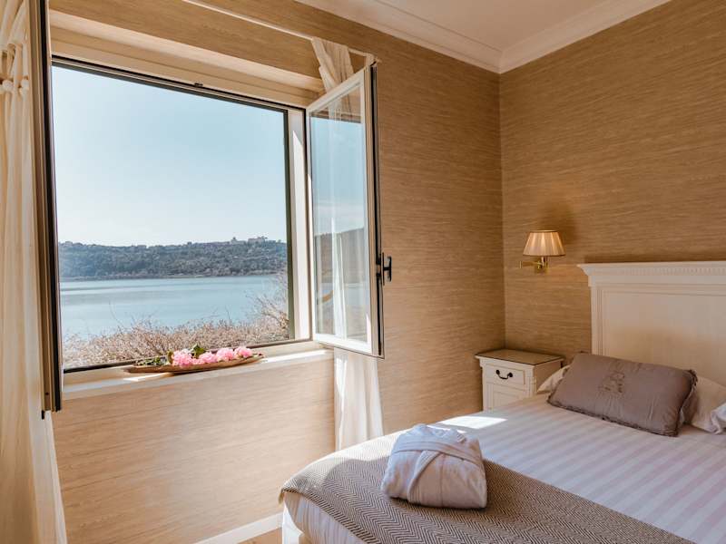 Das Hotel La Culla Del Lago befindet sich in ruhiger Lage, nur 5 Fahrminuten von der Innenstadt von Castelgandolfo entfernt. Die Nähe zum See und der private Strand bieten Ihnen die Möglichkeit, die Schönheit der Natur in vollen Zügen zu genießen. Von der Sonnenterrasse aus haben Sie einen herrlichen Blick auf den See und können die Ruhe und Entspannung genießen.