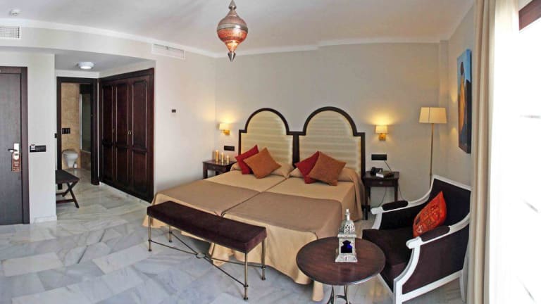 Das Hotel La Fonda in Benalmádena ist ein wunderschönes, weißes Gebäude, das Ihnen einen entspannten Aufenthalt in Andalusien bietet. Mit einem Außenpool und einem traditionellen Innenhof können Sie die mediterrane Atmosphäre genießen. Die Zimmer sind stilvoll eingerichtet und verbinden arabische, andalusische und griechische Elemente. Das hoteleigene Restaurant serviert exzellente mediterrane Küche, und das Frühstück kann auf der Dachterrasse mit Blick auf das Mittelmeer eingenommen werden. Der Wellnessbereich bietet zusätzliche Entspannungsmöglichkeiten mit einer Massagekabine und einer Sauna.