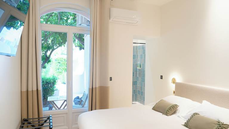 Die Zimmer im Hotel La Garoupe-Gardiole sind komfortabel eingerichtet und verfügen über kostenfreies WLAN. Alle Zimmer sind klimatisiert und einige bieten einen eigenen Balkon mit Blick auf den Pool.