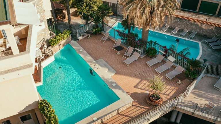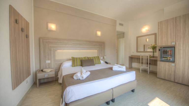 Die Zimmer im Hotel Residence La Palma sind modern und komfortabel eingerichtet und bieten Ihnen alles, was Sie für einen angenehmen Aufenthalt benötigen. Sie können zwischen verschiedenen Zimmerkategorien wählen, je nach Ihren individuellen Bedürfnissen und Vorlieben. Das Hotel verfügt auch über zwei Pools, in denen Sie sich an heißen Tagen erfrischen können, sowie einen hübschen Garten, in dem Sie sich entspannen können. Wenn Sie lieber im Schatten sind, steht Ihnen auch ein gemütliches Wohnzimmer zur Verfügung, in dem Sie ein Buch lesen oder einfach nur entspannen können. Die American Bar lädt zu einem Drink ein und rundet das Angebot ab.