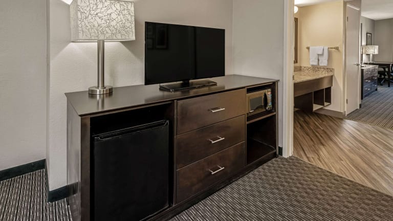 Das Hotel bietet 129 Suiten auf 5 Etagen, die bequem mit einem Aufzug erreichbar sind. Die Suiten sind Nichtraucherzimmer und verfügen über Annehmlichkeiten wie einen Flachbild-TV, eine Mikrowelle, einen Kühlschrank und Tee- und Kaffeezubehör. Jede Suite ist klimatisiert und verfügt über einen Schreibtisch.
