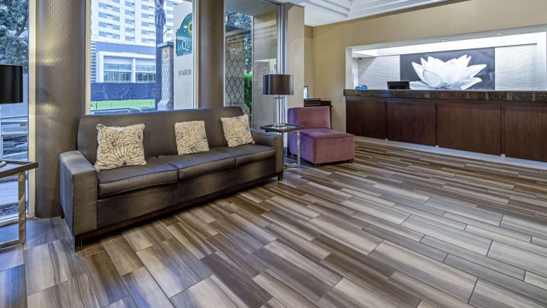 Das Hotel La Quinta by Wyndham Anaheim ist die perfekte Wahl für einen Aufenthalt in Anaheim, besonders für Besucher des Disneyland Freizeitparks, der nur 5 Fahrminuten entfernt liegt. Das Hotel bietet eine komfortable und entspannte Atmosphäre mit einem überdachten Außenpool und einem leckeren kontinentalen Frühstück. Die Suiten sind Nichtraucherzimmer und verfügen über kostenfreies WLAN sowie eine moderne Ausstattung, einschließlich Flachbild-TV, Mikrowelle und Kühlschrank. Das freundliche Personal an der 24-Stunden-Rezeption steht Ihnen jederzeit zur Verfügung und das Hotel bietet auch ein Businesscenter, ein Fitnesscenter und einen Waschsalon. Die Lage des Hotels ist ideal, nur 1,6 km vom Kongresszentrum Anaheim Convention Center entfernt und in der Nähe von Flughäfen wie John Wayne und Long Beach.