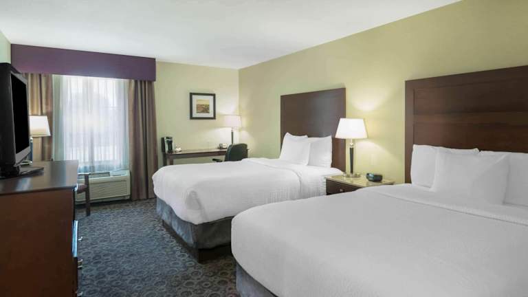 Convenience in Las Vegas Two miles from LAS Airport and near the Las Vegas Strip Our La Quinta® by Wyndham Las Vegas Airport South hotel is conveniently located two miles from McCarran International Airport (LAS) and six miles from the Las Vegas Strip. Free 24-hour shuttle service is available to either destination, giving you full access to Las Vegas—day and night. Our Southern Nevada hotel also offers prime access to national parks, the Hoover Dam, and the California and Arizona borders via I-15 and I-11. Amenities including our 24-hour pool, hot tub, and fitness center round out a truly memorable stay in Las Vegas.
