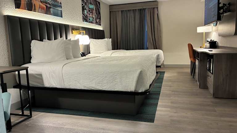 Das La Quinta Inn and Suites Nashville Airport Opryland bietet 135 einfach eingerichtete Zimmer, die mit Annehmlichkeiten wie Klimaanlage, individuell regelbarer Heizung und kostenfreiem WLAN ausgestattet sind. Ein Balkon gehört zur Grundausstattung der meisten Zimmer. Für zusätzlichen Komfort stehen ein Kühlschrank, eine Mikrowelle und eine Tee-/Kaffeemaschine zur Verfügung. Im Badezimmer finden Sie eine Dusche, eine Badewanne und einen Haartrockner. Das Hotel bietet auch Familien- und Nichtraucherzimmer.