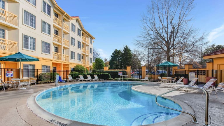 Das La Quinta Inn and Suites Raleigh Durham International Airport bietet seinen Gästen eine ideale Lage in der Nähe des Flughafens, komfortable Zimmer und Annehmlichkeiten wie kostenloses WLAN und ein warmes kontinentales Frühstück. Entspannen Sie im Außenpool oder nutzen Sie das Fitnesscenter. Die Duke University und das Einkaufszentrum Prime Outlet Mall sind ebenfalls in der Nähe.