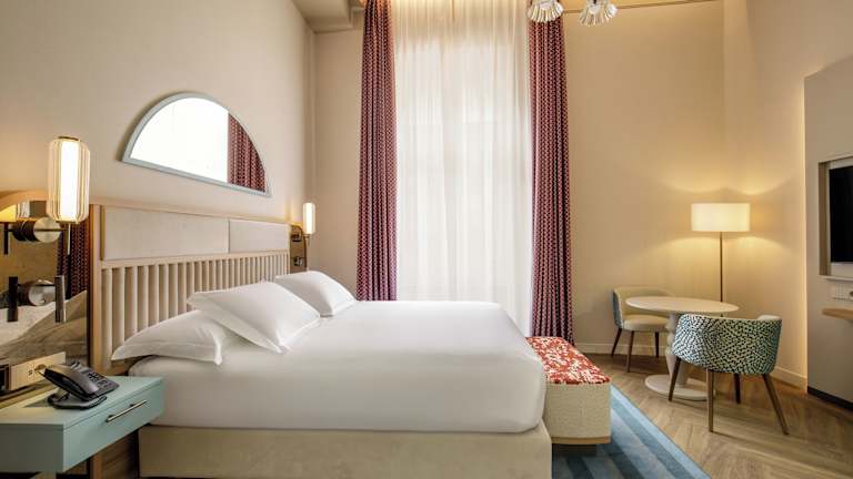Die Zimmer im Hotel La Rosetta sind klimatisiert und verfügen über ein Doppelbett, ein Queensize-Bett oder ein Kingsize-Bett. Weitere Ausstattung umfasst einen Safe, eine Minibar, einen Kühlschrank sowie einen Schreibtisch. Zu den technischen Annehmlichkeiten zählen ein Telefon mit Direktwahl, ein TV-Gerät mit Satelliten- bzw. Kabelfernsehen, ein Radio und WLAN. In den Badezimmern mit Dusche und Badewanne sind Haartrockner und Kosmetikartikel vorhanden. Rollstuhlgerechte Zimmer sind ebenfalls buchbar.
