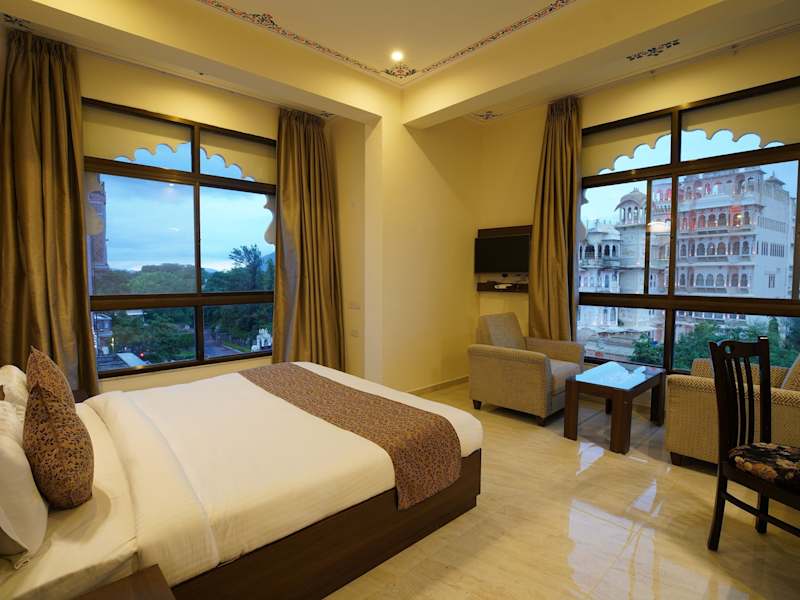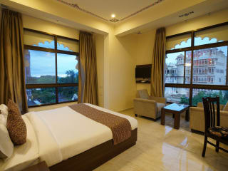 Das Hotel The Lake View Palace in Udaipur bietet seinen Gästen einen atemberaubenden Ausblick auf den Pichola-See und eine günstige Lage in der Nähe von Sehenswürdigkeiten wie dem Lake Fateh Sagar und dem Jagdish-Tempel. Die Zimmer sind stilvoll eingerichtet und verfügen über Annehmlichkeiten wie kostenloses WLAN und Flachbildfernseher. Das Hotel bietet auch ein großes Frühstück und unterstützt bei der Tourenplanung. Gäste können den Innenpool und die Dachterrasse mit Panoramablick genießen.