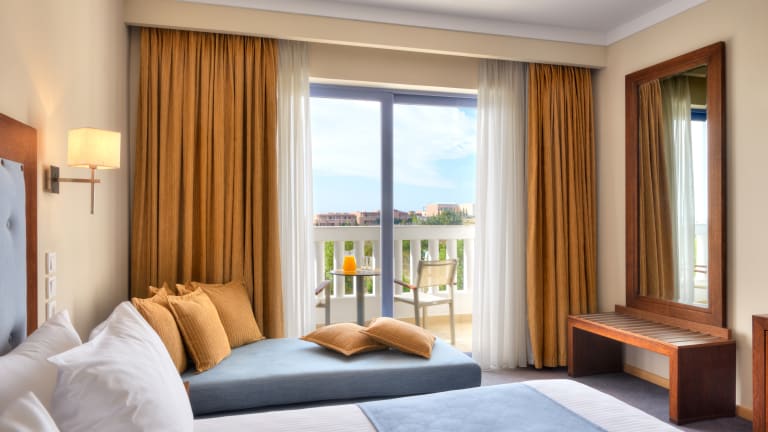 Die 83 Zimmer des Hotels sind komfortabel eingerichtet und bieten eine angenehme Atmosphäre für einen erholsamen Aufenthalt. Jedes Zimmer verfügt über eine Klimaanlage, einen Balkon und kostenfreies WLAN. Die Betten sind komfortabel und bieten ausreichend Platz zum Entspannen. Zur Ausstattung gehören auch ein Safe, eine Minibar und ein Schreibtisch. Das Badezimmer verfügt über eine Dusche oder eine Badewanne, einen Haartrockner und Bademäntel.