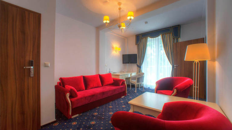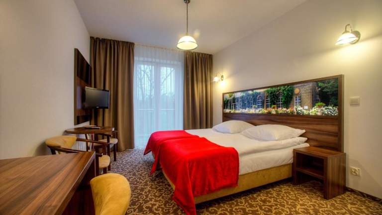 Die Zimmer im Hotel Łańcut sind gemütlich eingerichtet und verfügen über einen TV, einen Balkon und einen Sitzbereich. Das eigene Bad ist mit einer Dusche ausgestattet. Einige Zimmer bieten zudem einen schönen Blick auf den Pool und den Garten. Kostenfreies WLAN steht Ihnen im gesamten Hotel zur Verfügung.