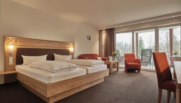 Die modernen Gästezimmer im Landgasthof Adler-Pelzmühle bieten Ihnen Komfort und Gemütlichkeit. Hier können Sie sich nach einem ereignisreichen Tag entspannen und zur Ruhe kommen. Das Hotel verfügt außerdem über verschiedene Freizeiteinrichtungen wie Tischtennis, ein Solarium und eine Saunalandschaft, die Ihnen zusätzliche Entspannungsmöglichkeiten bieten. WLAN ist im gesamten Hotel verfügbar, sodass Sie immer mit Ihren Lieben in Kontakt bleiben können. Die Gartenterrasse und die Liegewiese laden zum Verweilen im Freien ein.