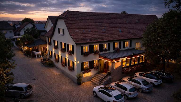 Das Frühstück wird jeden Morgen im einladenden Speisesaal des Landgasthofs Ochsen serviert. Hier können Sie den Tag mit einer Auswahl an köstlichen Speisen beginnen. Das Restaurant des Hotels bietet deutsche und internationale Gerichte in einer angenehmen Atmosphäre. Mit originalen Holzbalken und einem schönen roten Dekor lädt das Restaurant zum Genießen und Entspannen ein.