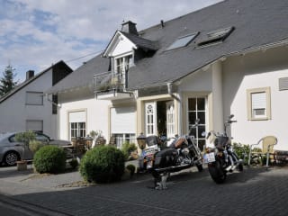 Wir liegen im wunderbaren Weinort Lieser etwas oberhalb mit wunderschönem Blick auf das Tal, die Mosel und die Weinberge.