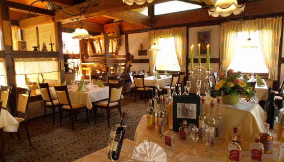 Wir bieten Ihnen neben unserem unserem rustikal romantischen Restaurant mit leichter deutscher Küche auch eine kleine Wein/Bierstube, eine mediterrane Terrasse sowie einen gemütlichen Biergarten. Das kulinarische Angebot umfaßt von deftig bis fein alle Sparten. Wir beziehen größten Teils die Produkte und Erzeugnisse zu unseren Speisen aus der heimischen Region des "Fuldatals".