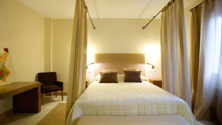 Das Hotel La Vida Spa in Aldeayuso ist der ideale Ort, um sich zu entspannen und die wunderschöne Landschaft der Ribera del Duero zu genießen. Hier können Sie eine einzigartige Kombination aus Wasser- und Weintherapien erleben und sich im Wellnessbereich mit Jet-Pool, Türkischem Bad und Nebeldusche verwöhnen lassen. Der hoteleigene Weinkeller bietet eine große Auswahl an spanischen und internationalen Weinen. Das Hotel bietet außerdem ein Restaurant, Tagungsräume und eine Gemeinschaftslounge mit einem TV. Die Philosophie des Hotels basiert auf der Verlangsamung des Lebens, damit Sie die Zeit haben, die Schönheit des Hotels und der Umgebung in vollen Zügen zu genießen.