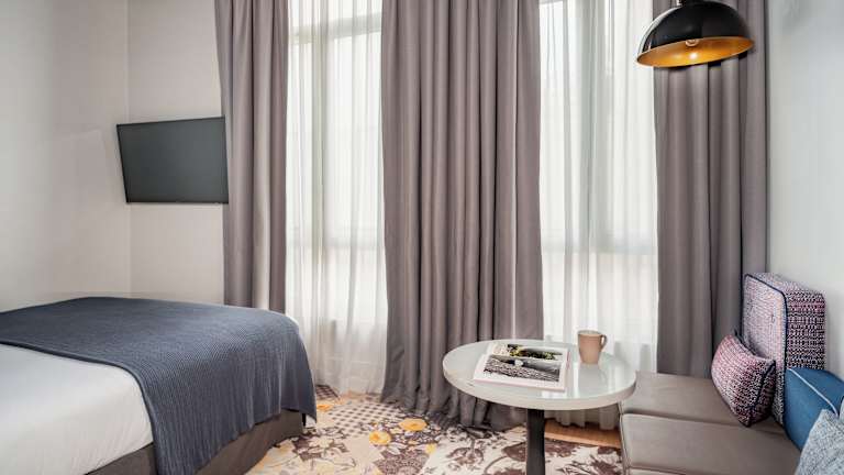 Die 49 Zimmer des Hotels erstrecken sich über 7 Etagen und bieten den Gästen Komfort und Gemütlichkeit. Zur Ausstattung gehören Klimaanlage, Heizung, WLAN, Fernseher, Minibar und Safe. Die meisten Zimmer verfügen über einen Balkon, von dem aus Sie die Aussicht auf die Stadt genießen können. Die Badezimmer sind mit Dusche, Badewanne und Haartrockner ausgestattet. Es gibt auch rollstuhlgerechte Zimmer.