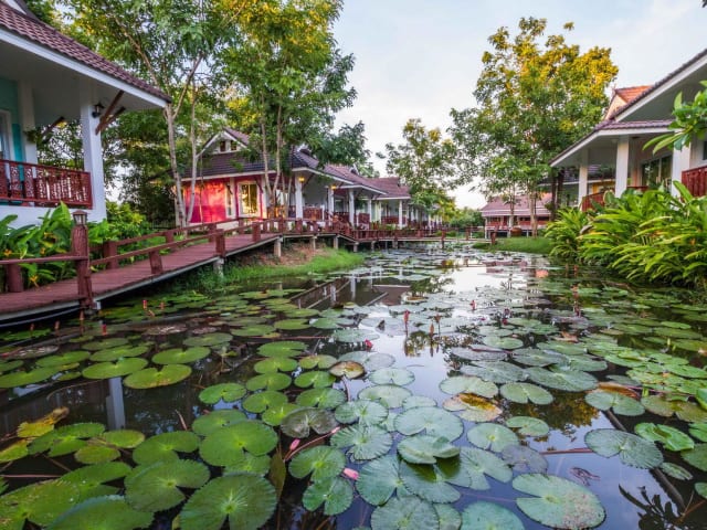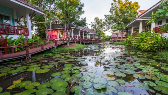 Das Hotel Le Charme Sukhothai Historical Park liegt in der Altstadt von Sukhothai, nur 1 km vom Eingang des historischen Parks Sukhothai entfernt. Die Lage ist ideal für Gäste, die das UNESCO-Weltkulturerbe und den historischen Park besichtigen möchten. In der Nähe des Hotels befinden sich auch der Ramkhamhaeng Nationalpark und Keramik-Manufakturen.