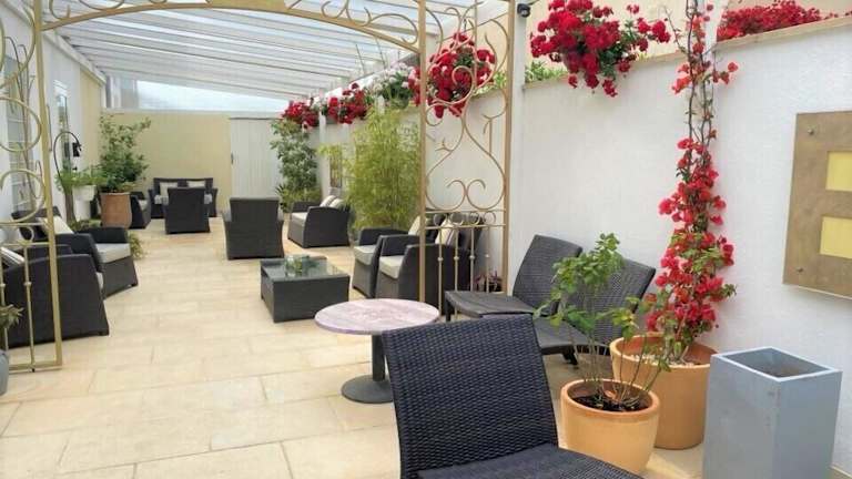 Das Hotel bietet eine Sonnenterrasse, auf der Sie sich entspannen und die Sonne genießen können.