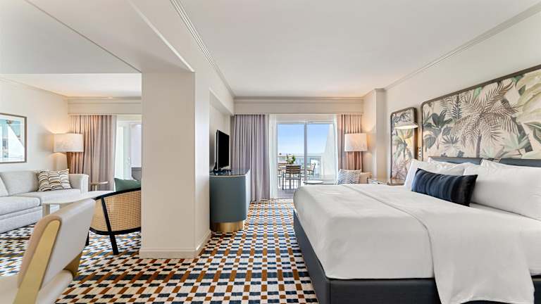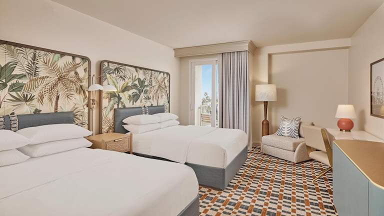 Die 310 Zimmer des Le Meridien Delfina Santa Monica bieten einen komfortablen Rückzugsort nach einem ereignisreichen Tag. Die Zimmer verfügen über Annehmlichkeiten wie Klimaanlage, TV, Safe und WLAN. Einige Zimmer bieten einen atemberaubenden Blick auf den Pazifischen Ozean. Das Hotel bietet auch einen beheizten Außenpool mit Cabanas, in dem Sie sich entspannen und die Sonne genießen können. Der SandBox-Bereich bietet Unterhaltungsmöglichkeiten wie Gaming-Systeme, Shuffleboard, Darts und Billard.