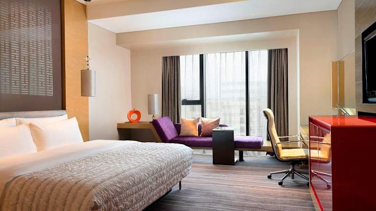 Die geräumigen Gästezimmer im Le Meridien Qingdao sind modern eingerichtet und verfügen über eine vollständige Klimaanlage. Jedes Zimmer ist mit einem Safe, einem Wasserkocher und einem Flachbild-TV ausgestattet. Das Badezimmer bietet kostenlose Pflegeprodukte und einen Haartrockner.