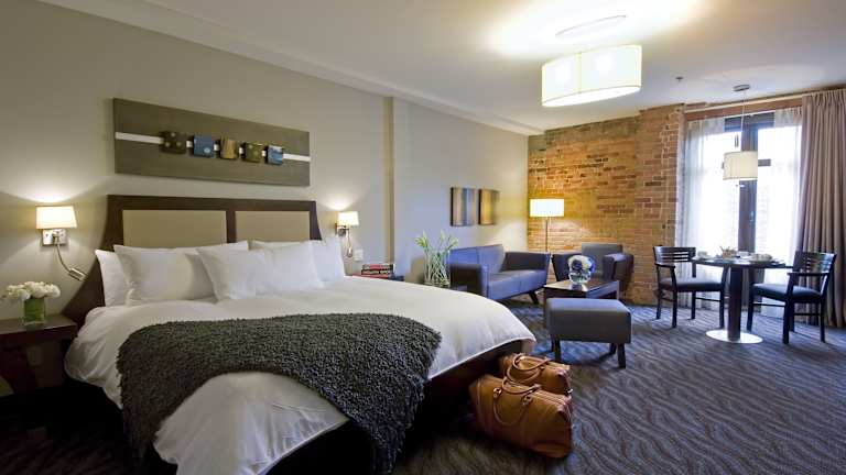 Das Hotel verfügt über 105 Nichtraucherzimmer, die alle mit Annehmlichkeiten wie Daunendecken, modernen Bädern und Flachbildfernsehern ausgestattet sind. Die Zimmer zeichnen sich durch große Fenster aus, die viel Tageslicht hereinlassen, und einige bieten einen Blick auf die Altstadt von Montreal.