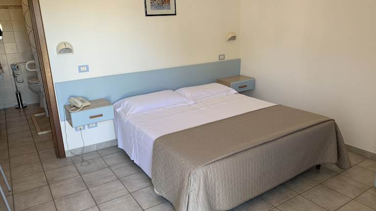 Die Zimmer im Hotel Le Palme sind klassisch und komfortabel eingerichtet und verfügen über einen eigenen Eingang vom Garten aus. Die Zimmer sind in blauen Farbtönen gehalten und bieten eine angenehme Atmosphäre. Zur Ausstattung gehören ein Flachbild-TV und ein voll ausgestattetes Badezimmer mit Dusche. Die Gäste können sich in den gemütlichen Zimmern entspannen und eine erholsame Nacht verbringen.