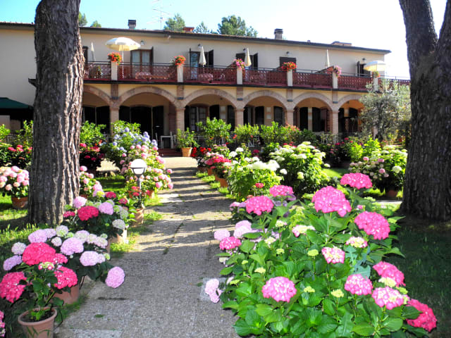 Das Hotel Le Renaie in Pancole bietet Ihnen einen erholsamen und malerischen Aufenthalt in der Nähe von San Gimignano. Mit einer charmanten Einrichtung, einem schönen Zitrusgarten und einem Pool bietet das Hotel eine entspannte Atmosphäre. Das Restaurant Leonetto verwöhnt Sie mit köstlichen Gerichten, die Sie auf der Terrasse mit Blick auf den Garten genießen können.