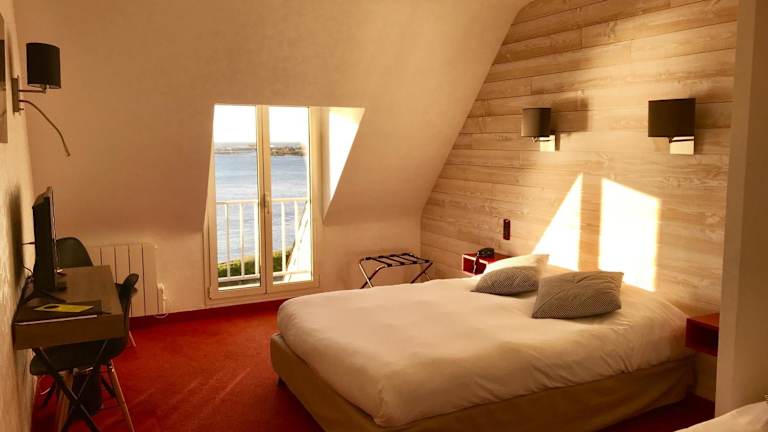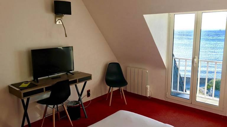 Die Zimmer im Hotel Le Sterenn bieten Ihnen ein komfortables und gemütliches Ambiente. Sie verfügen über ein eigenes Bad und entweder Meerblick oder einen Blick auf die umliegende Landschaft. Genießen Sie den Komfort und die Annehmlichkeiten, die Ihnen in den Zimmern geboten werden, und fühlen Sie sich wie zu Hause.
