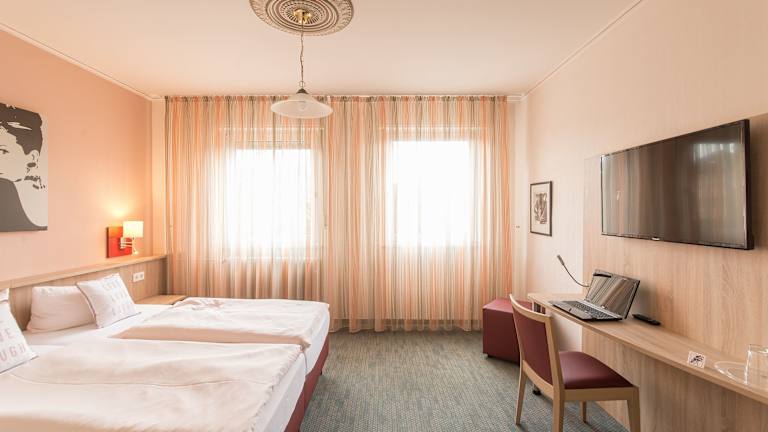 Die Zimmer im Hotel Leander sind komfortabel und gemütlich eingerichtet. Jedes Zimmer verfügt über ein eigenes Badezimmer und einen Fernseher mit kostenfreien Sky-Sport-Kanälen. Die Einrichtung ist ansprechend und sorgt für eine angenehme Atmosphäre während des Aufenthalts. Kostenloses WLAN steht in allen Zimmern zur Verfügung.