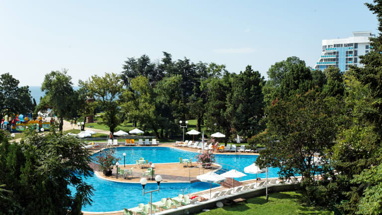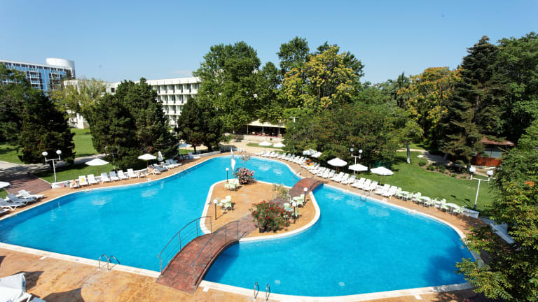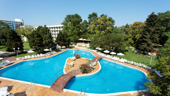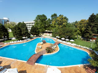 Das Hotel in Sveti Konstantin bietet seinen Gästen einen entspannten Urlaub in einer wunderschönen Parkgegend, nur 150 m vom Sandstrand entfernt. Mit seinen komfortablen Zimmern, einem Innen- und Außenpool sowie einem umfangreichen Wellnessbereich bietet das Hotel allen Gästen eine erholsame und angenehme Atmosphäre. Das All-Inclusive-Angebot und die verschiedenen gastronomischen Einrichtungen lassen keine Wünsche offen. Für sportliche Aktivitäten stehen Tennisplätze, ein Fitnessraum und ein umfangreiches Animationsprogramm zur Verfügung. Familien mit Kindern werden den Kinderpool und den Kinderspielplatz zu schätzen wissen.