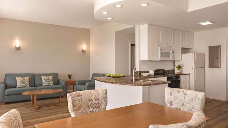 Die Zimmer im Radisson Hotel Panama City Beach - Oceanfront sind geräumig und bieten eine voll ausgestattete Küche, kostenfreies WLAN und einen Balkon mit Blick auf den Golf von Mexiko. Die Zimmer sind komfortabel eingerichtet und bieten einen separaten Sitzbereich mit Kabel-TV.