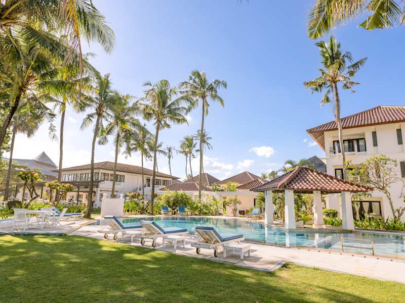 Das Legong Keraton Beach Hotel liegt direkt am ruhigen Berawa Beach in Kuta. Der Strand ist nur einen Steinwurf entfernt und lädt zum Entspannen und Sonnenbaden ein. Das Hotel befindet sich inmitten einer tropischen Landschaft mit schattenspendenden Palmen. In der Umgebung gibt es auch Einkaufsmöglichkeiten und das pulsierende Zentrum von Kuta ist nur eine kurze Fahrt entfernt. Der Flughafen Denpasar ist etwa 30 Fahrminuten entfernt.
