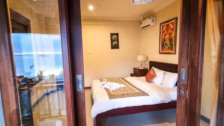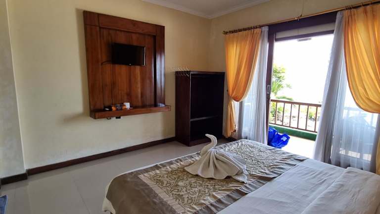 Die Zimmer im Lembongan Made Inn sind im traditionellen Stil gestaltet und bieten den Gästen eine gemütliche und entspannte Atmosphäre. Die Zimmer verfügen über große Fenster, die viel natürliches Licht hereinlassen, sowie über Holzmöbel, die dem Raum eine warme und einladende Note verleihen. Einige Zimmer sind klimatisiert und bieten einen Gemeinschaftsbalkon mit herrlichem Meerblick. Das private Badezimmer ist mit einer Dusche ausgestattet. Vor den Bungalows gibt es einen Sitzbereich, der zum Entspannen einlädt und einen Blick auf die tropische Umgebung bietet.