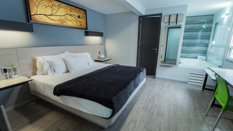 Das HOTEL LEMON GREEN -Zona Expo Frente al Centro de Convenciones ist eine Nichtraucherunterkunft mit rund um die Uhr besetzter Rezeption und Gepäckaufbewahrung. Es stehen kostenloses WLAN und ein kostenloser Privatparkplatz zur Verfügung. Die Unterkunft ist ein modernes Hotel mit einem ansprechenden Angebot für Geschäftsreisende und Urlauber.