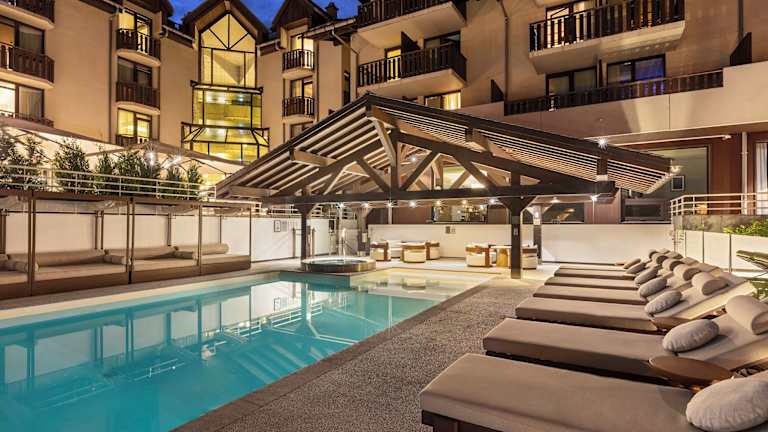 Das Hôtel Le Refuge des Aiglons in Chamonix-Mont-Blanc bietet seinen Gästen einen angenehmen Aufenthalt mit atemberaubendem Blick auf den Mont Blanc und die umliegenden Berge. Das Hotel verfügt über einen beheizten Außenpool, ein Wellnesscenter mit Sauna und Dampfbad sowie Massage- und Schönheitsanwendungen. Die modern eingerichteten Zimmer bieten kostenfreies WLAN, Sat-TV und ein eigenes Bad. Im Restaurant können Gäste innovative Küche genießen, während die Loungebar und die Terrasse am Pool den perfekten Ort zum Entspannen bieten. Die Lage des Hotels ermöglicht es den Gästen, die Umgebung mit dem Fahrrad zu erkunden und die Seilbahn Aiguille du Midi zu besuchen.