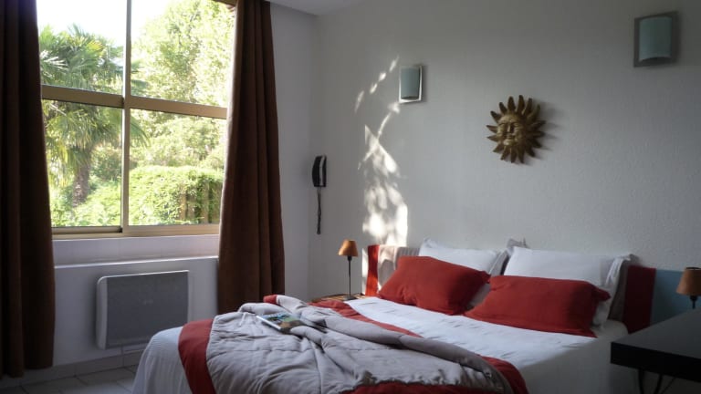 Die Zimmer im Hotel Les Bellugues bieten modernen Komfort und eine gemütliche Atmosphäre. Jedes Zimmer verfügt über einen Flachbild-TV, kostenfreies WLAN und ein eigenes Badezimmer mit Haartrockner. Genießen Sie den Komfort und die Annehmlichkeiten dieser Unterkunft während Ihres Aufenthalts.