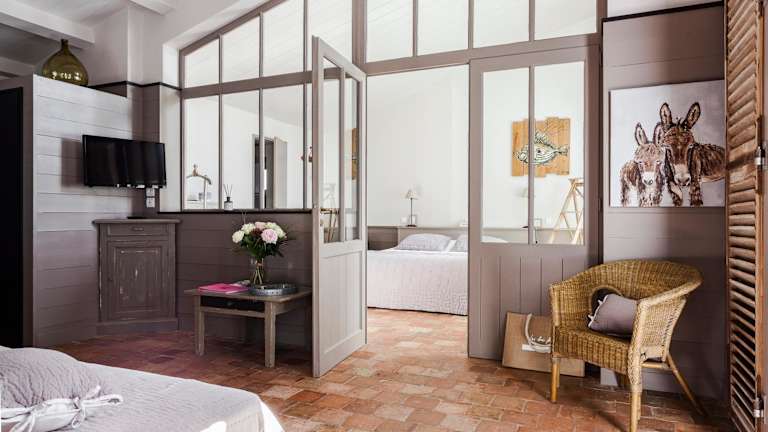 Die Zimmer im Hotel Les Bois Flottais sind klimatisiert und individuell eingerichtet. Sie sind rund um den Außenpool verteilt und bieten einen komfortablen Rückzugsort für erholsame Nächte. Jedes Zimmer verfügt über ein eigenes Bad mit Badewanne oder Dusche und Bademänteln.