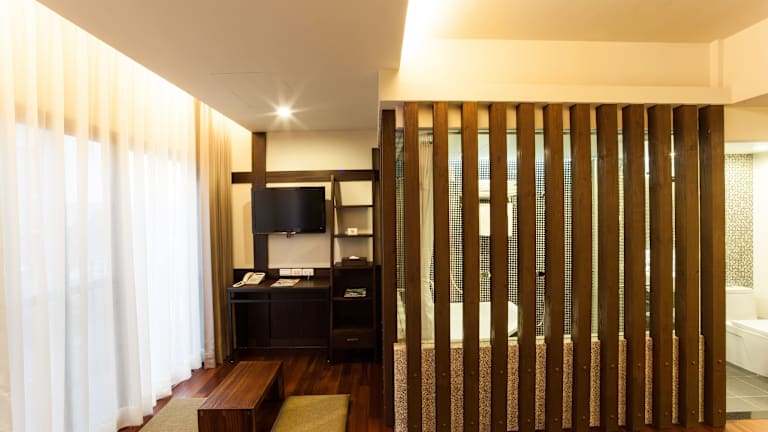 Die Zimmer im Hotel Les Champs Hualien sind mit raumhohen Glasfenstern ausgestattet, die für eine helle und freundliche Atmosphäre sorgen. Jedes Zimmer verfügt über einen Flachbild-TV sowie kostenloses Mineralwasser und kostenfreie Teebeutel. Im eigenen Bad finden Sie hochwertige Pflegeprodukte vor.