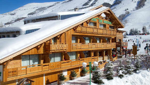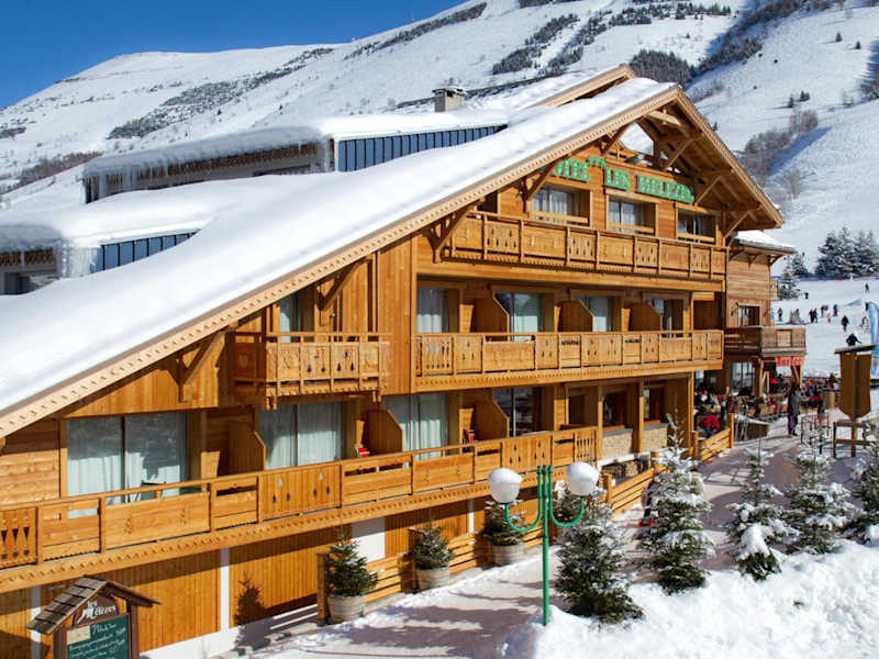 Das Hotel Les Mélèzes liegt im Ferienort Les Deux Alpes mit direktem Zugang zu den Skipisten, wodurch es eine ideale Lage für Wintersportler bietet.