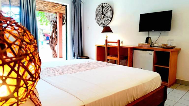Die klimatisierten Zimmer im Hôtel Les Palmiers sind komfortabel eingerichtet und bieten einen Schreibtisch, eine Kaffeemaschine, einen Kühlschrank, einen Backofen, einen Safe, einen Flachbild-TV, eine Terrasse und ein eigenes Badezimmer mit Dusche. Bettwäsche und Handtücher werden gestellt, um den Gästen einen angenehmen Aufenthalt zu ermöglichen.