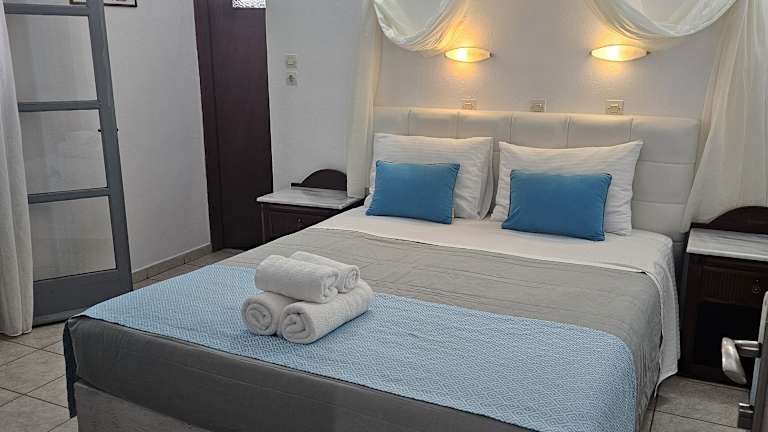 Das Hotel Leta verfügt über eine Terrasse, von der aus Sie einen herrlichen Blick auf die Ostküste der Insel und die tiefblaue Ägäis genießen können. Hier können Sie entspannen und die Aussicht genießen. In der Stadt Fira finden Sie zahlreiche Restaurants und Cafés, in denen Sie die griechische Küche und lokale Spezialitäten probieren können.