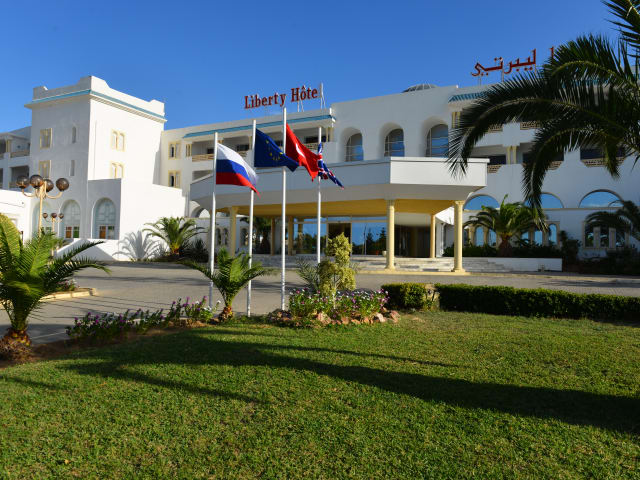 Das neu renovierte HOTEL Liberty Resort in Monastir (LETZTER RENOVIERUNG : 2018), ist 4 stern hotel LAGE : - Nur wenige Minuten vom Flughafen entfernt und trotzdem ruhig - 150m vom Strand durch eine Uferstrasse getrennt - Ideale Lage 12 km Sousse und 6km Monastir - Der Golfplatz Palm Links ist 5 Min.und Golfplatz Flamingo ist 10 Min. entfernt. AUSSTATTUNG : - 237 ZIMMER - Alle Zimmer sind mit Klimaanlage, Balkon, Badezimmer mit Haartrockner , Telefon, TV mit Satellitenprogramm, Safe RESTAURANTS : 05 - LE FLAMINGO – Grosses Hauptrestaurant mit Buffet und individuellen Food-Stations - AL MAEEDA – Elegantes à la carte Restaurant - HAPPY DAYS – Coffee Shop - FLIPPER – Erlebnis – Barbecue am Pool - PALM BEACH – Strandbar mit Getränken und Snack BARS : - THE FOUNTAIN - Lobby Bar - ZANZIBAR – English Pub - SHERAZADE – Verträumtes Maurisches Café - COSMOS – Lebendiger Night Club mit Disco SPORT , ANIMATION - Riesiger Erlebnis-Swimmingpool (1200m³ / 552m²) mit separatem Pool für kinder - Grosses, beheiztes Hallenbad im Winter (370m²) - Volleingerichteter Fitnessraum - 2 Tennisplätze mit Beleuchtung - Mini Golf - Spielraum mit Spieltischen und Computergames - Tischtennis - Pedalos (Tretboote) am Strand - Coiffeur - Mini Club mit Kindergärtnerin für die Kleinen