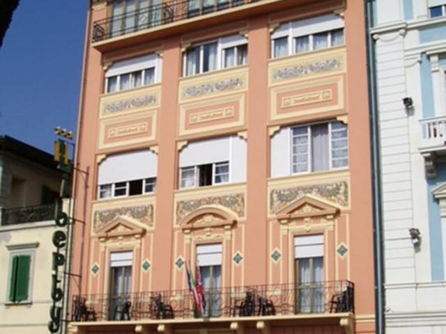 Das Hotel Liberty in Viareggio bietet Ihnen einen komfortablen Aufenthalt direkt an der Strandpromenade. Genießen Sie die Nähe zu Restaurants und Cafés, sowie den kostenlosen WLAN-Zugang und die klimatisierten Zimmer mit Flachbild-Sat-TV. Der Strand ist nur wenige Schritte entfernt und bietet ermäßigte Sonnenschirme und Liegestühle. Nutzen Sie die zentrale Lage des Hotels, um den Karnevalszirkel zu erkunden. Beginnen Sie Ihren Tag mit einem leckeren Frühstücksbuffet und entspannen Sie sich bei einem Getränk an der Bar. Der Bahnhof Viareggio ist nur 1 km entfernt und bietet gute Anbindungen nach Pisa und Lucca. Motorradfahrer können die kostenfreien Parkplätze nutzen und auf Anfrage werden ermäßigte öffentliche Parkplätze zur Verfügung gestellt.