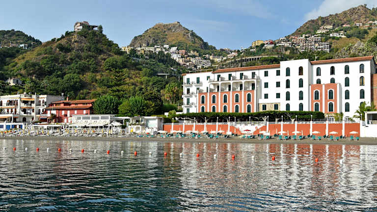 Das Hotel Lido Mediterranee in Taormina bietet seinen Gästen einen entspannten Aufenthalt in einer malerischen Bucht. Mit einem eigenen Strand und klimatisierten Zimmern mit Meerblick erwartet Sie hier eine perfekte Kombination aus Komfort und Natur. Das Hotel verfügt über ein Restaurant mit Terrasse, auf der Sie sizilianische und internationale Küche genießen können. Die günstige Lage ermöglicht es Ihnen, das Zentrum von Taormina schnell und bequem mit der nahegelegenen Seilbahn zu erreichen.