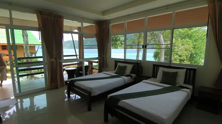 Das Mountain Resort Koh Lipe auf den Malediven von Thailand ist der ideale Ort für einen erschwinglichen und unvergesslichen Urlaub. Genießen Sie den atemberaubenden Blick auf den Sonnenuntergang, entspannen Sie an einem exklusiven Strand und nutzen Sie das kostenfreie WLAN. Das Resort bietet gut ausgestattete Zimmer mit Klimaanlage, Flachbild-Kabel-TV, Kühlschrank und Wasserkocher. Das freundliche Personal unterstützt Sie bei der Organisation von Wassersportaktivitäten wie Schnorcheln und Angeln. Das Resort verfügt auch über ein Internet-Café und eine Bibliothek für zusätzlichen Komfort. Im hoteleigenen Restaurant können Sie thailändische und westliche Gerichte genießen und dabei die herrliche Aussicht auf die umliegenden Hügel und das Meer genießen. Der Transfer zu den Flughäfen Hat Yai und Trang dauert etwa 4 Stunden.