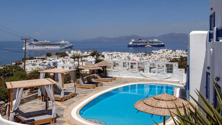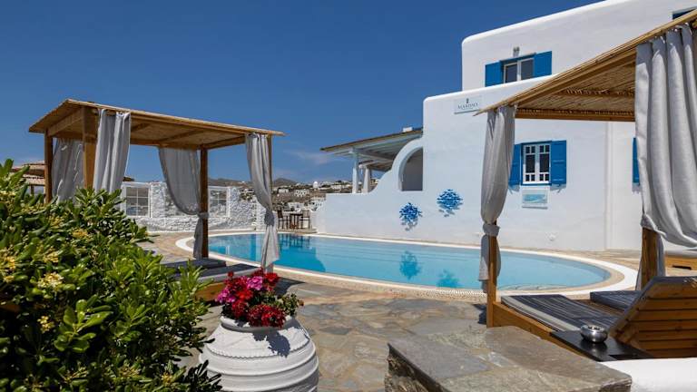 Das Marisso Hotel in Mykonos Stadt bietet eine malerische Kulisse mit Blick auf die Hauptstadt von Mykonos und ist der ideale Ort für einen erholsamen Urlaub. Genießen Sie den Pool mit Sonnenterrasse und die Snackbar. Die Unterkunft ist traditionell gebaut und bietet klimatisierte Wohneinheiten mit kostenfreiem WLAN und einem Balkon mit herrlichem Blick auf die Ägäis oder den Garten. Die Zimmer sind geschmackvoll eingerichtet und verfügen über moderne Möbel und traditionelle Elemente. Das freundliche Personal an der 24-Stunden-Rezeption steht Ihnen gerne zur Verfügung, um Ihnen bei der Organisation von Auto- oder Fahrradmieten zu helfen.