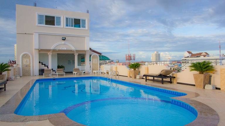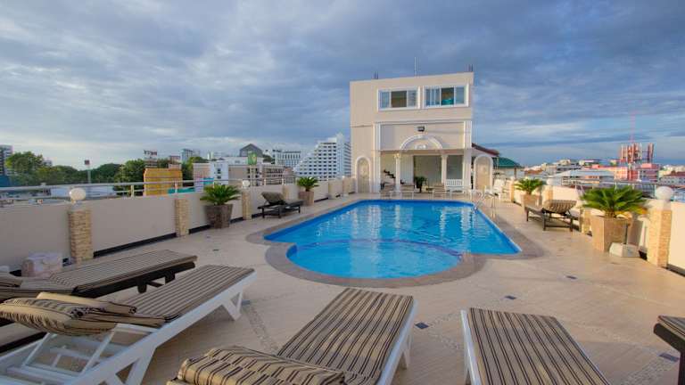 Das LK Mansion Hotel in Pattaya Central ist ein komfortables Hotel mit einem Außenpool und einer Sonnenterrasse. Die Unterkunft bietet klimatisierte Zimmer mit eigenem Bad und liegt in der Nähe vieler Sehenswürdigkeiten wie dem Central Festival Pattaya Beach und dem Hard Rock Café. WLAN ist gegen Aufpreis verfügbar und das Hotel bietet auch einen Reinigungsservice sowie einen Aufzug zu den oberen Etagen. Genießen Sie leichte Mahlzeiten und erfrischende Getränke an der hauseigenen Bar oder besuchen Sie das nahegelegene Restaurant.