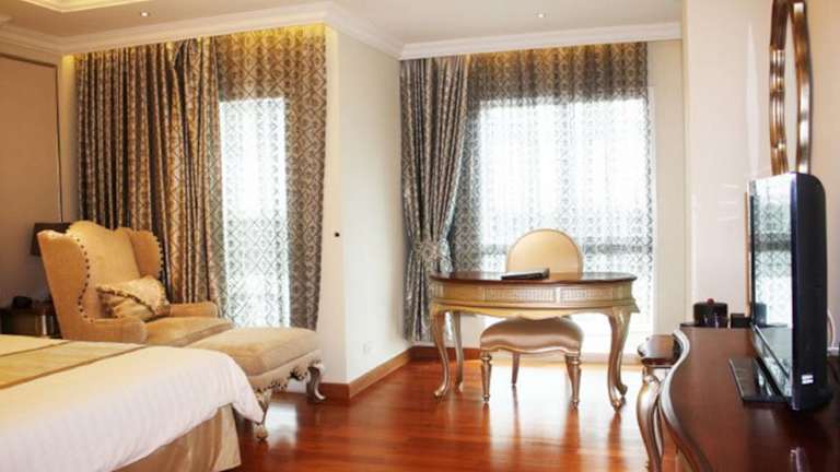 Das The Empress Hotel in Pattaya bietet eine gelungene Kombination aus klassischem europäischem Design und thailändischer Gastfreundschaft. Die eleganten Unterkünfte mit Hotelservice verfügen über kostenfreies WLAN und eine Küchenzeile. Entspannen Sie in der Sauna oder im Whirlpool im Garten. Das Hotel befindet sich nur 5 Gehminuten von der Shoppingmall Central Festival und nur wenige Schritte vom Strand entfernt. Die Zimmer im The Empress Hotel sind außergewöhnlich geräumig und bieten eine stimmungsvolle Beleuchtung sowie goldverzierte Möbel. Zur Ausstattung gehören ein Flachbild-Kabel-/Sat-TV, ein DVD-Player und ein komfortabler Sitzbereich. Das Hotel bietet zudem ein Fitnesscenter, einen Tourenschalter, ein Businesscenter und einen Wäscheservice. Das Restaurant The Circle serviert authentische thailändische und internationale Gerichte, und es besteht auch die Möglichkeit, den Zimmerservice in Anspruch zu nehmen.