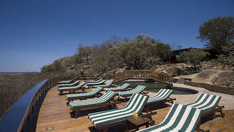 Super gelegenes Hotel mitten im Nordern der Serengeti mit einem wahnsinnigen Ausblick vom Pool auf die Weite der Serengeti.